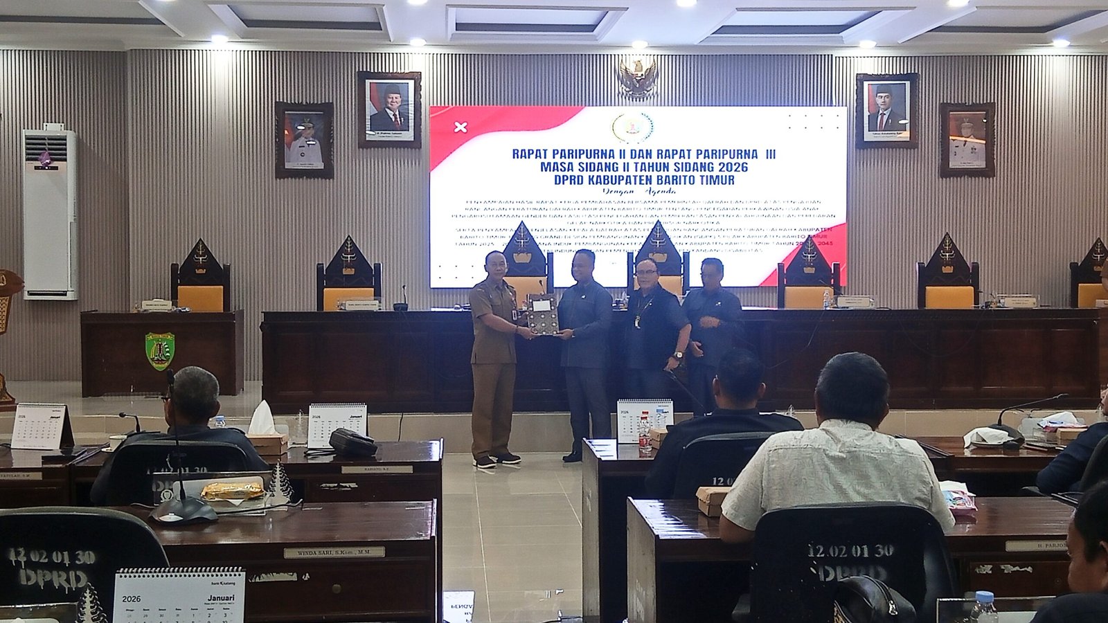 ASPIRASINEWS, Barito Timur – Dewan Perwakilan Rakyat Daerah (DPRD) Kabupaten Barito Timur menggelar Rapat Paripurna dengan agenda Laporan Hasil Rapat Kerja Pembahasan Bersama Pemerintah Daerah dan DPRD Kabupaten Barito Timur atas Pengajuan Rancangan Peraturan Daerah (Raperda), Senin (19/1/2026).