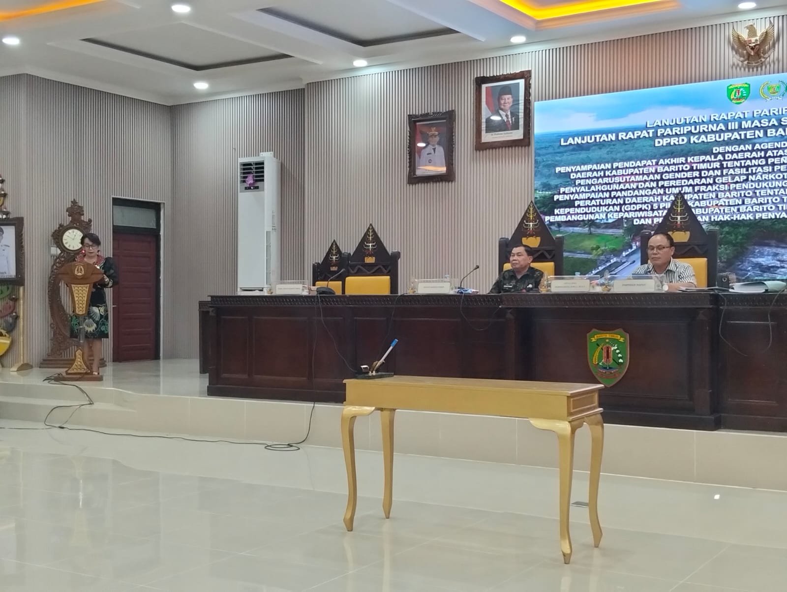 Rapat paripurna tersebut dipimpin oleh Wakil Ketua I DPRD Barito Timur, Mardianto, SH. Turut hadir anggota DPRD, Pelaksana Tugas Sekretaris DPRD, serta dari unsur eksekutif Asisten III Setda Bartim Edius Uhing, para kepala Organisasi Perangkat Daerah (OPD), dan undangan lainnya.