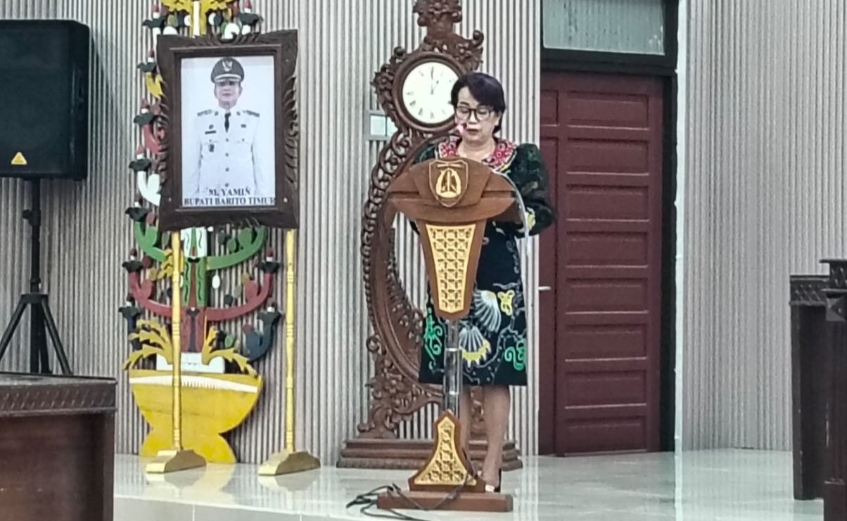 Juru Bicara Fraksi GPSRD yang juga Sekretaris Fraksi, Reni Sugiarti, S.Pd., MM, dalam penyampaiannya mengawali dengan ucapan syukur atas terselenggaranya lanjutan Rapat Paripurna VI Masa Sidang I Tahun Sidang 2026 DPRD Kabupaten Barito Timur, dengan agenda Pemandangan Umum Fraksi Pendukung Dewan terhadap tiga Rancangan Peraturan Daerah (Raperda).