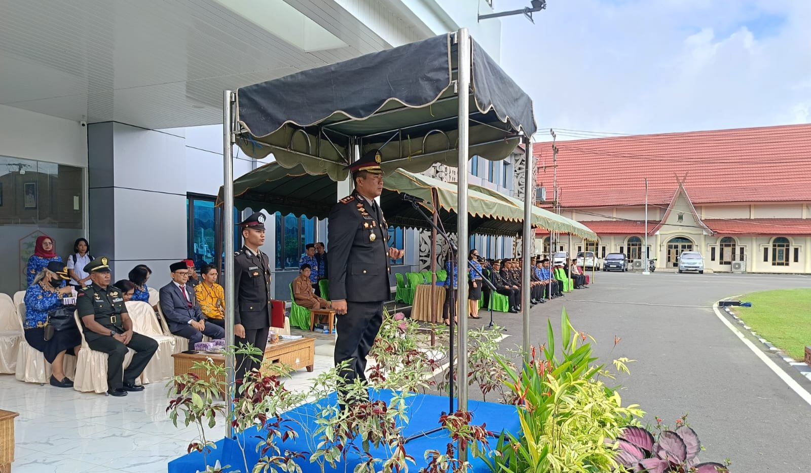 ASPIRASINEWS, Tamiang Layang — Kapolres Barito Timur (Bartim) AKBP Eddy Santoso, S.I.K., M.H. bertindak sebagai Pembina Upacara pada apel peringatan Hari Sumpah Pemuda ke-97 yang digelar di halaman Kantor Bupati Barito Timur, Selasa (28/10/2025).
