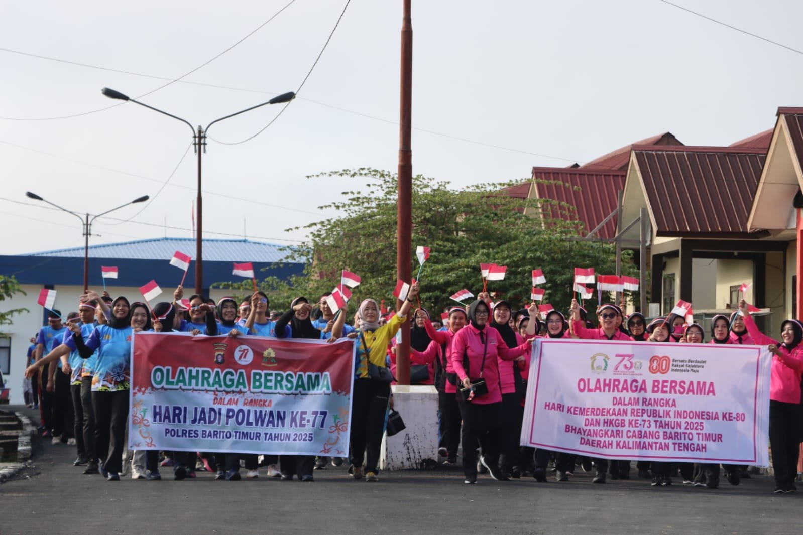 Kegiatan yang dipimpin langsung Kapolres Barito Timur dan diikuti oleh Wakapolres, Pejabat Utama Polres, Kapolsek jajaran, seluruh personel Polres Bartim, serta Bhayangkari Polres dan ranting jajaran ini berlangsung penuh keceriaan dan kekompakan.