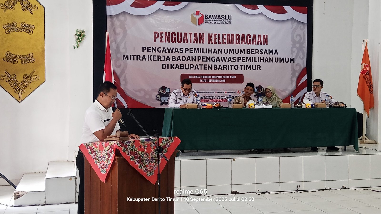 ASPIRASINEWS, Barito Timur – Asisten I Setda Barito Timur, Ari Panan P. Lelu, mewakili Bupati M. Yamin menghadiri kegiatan Penguatan Kelembagaan Pengawasan Pemilihan Umum bersama mitra kerja Badan Pengawas Pemilihan Umum (Bawaslu) Barito Timur. Acara berlangsung di aula Dinas Pendidikan setempat pada Rabu, 10 September 2025.