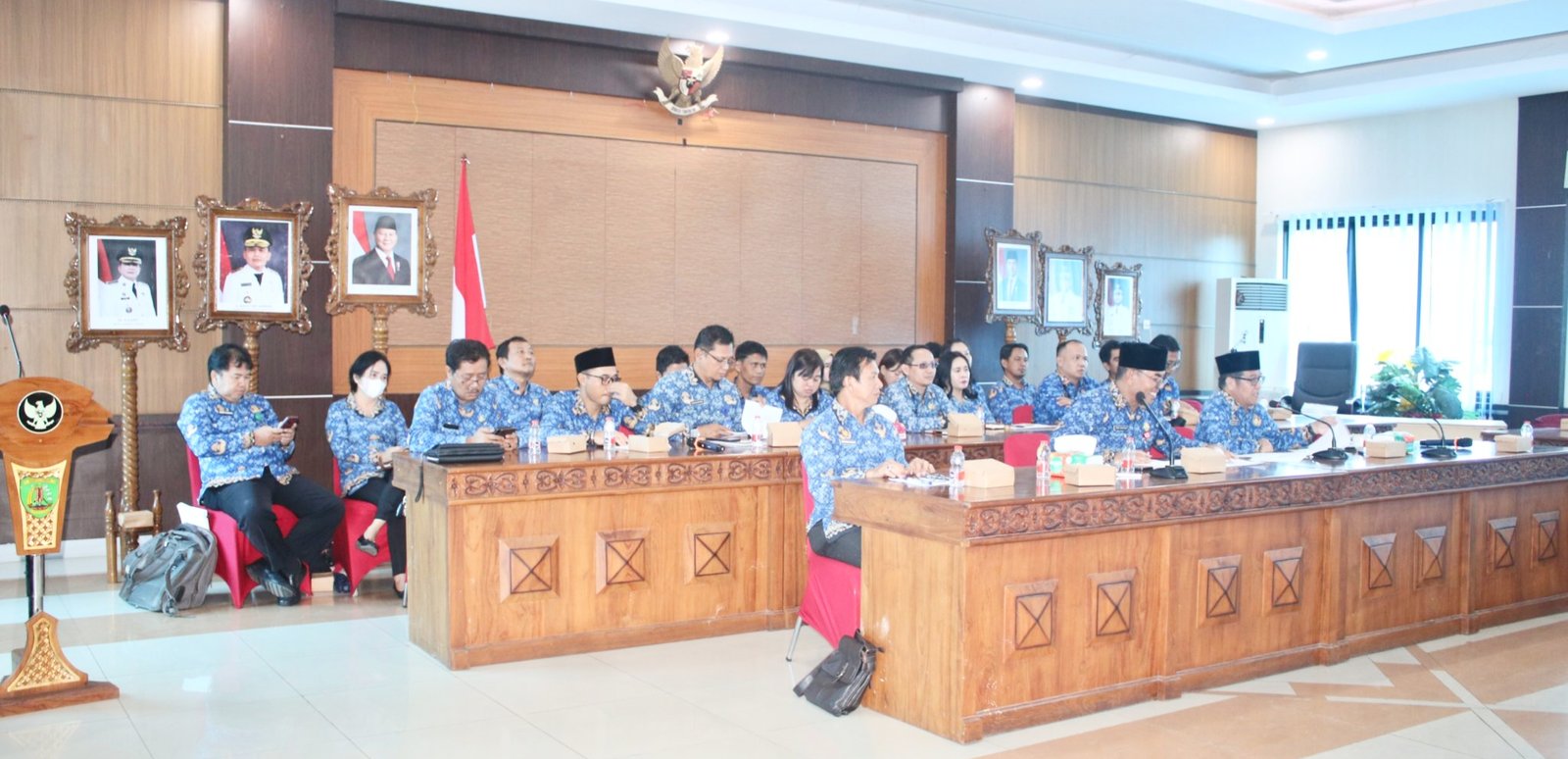 Kegiatan berlangsung melalui sambungan Zoom Meeting dari Ruang Rapat Bupati Barito Timur. Hadir dalam rapat tersebut Penjabat Sekretaris Daerah Barito Timur, Misnohartaku, didampingi Inspektur Kabupaten, serta para kepala Organisasi Perangkat Daerah (OPD) dan jajaran yang berkaitan dengan delapan area rawan korupsi.