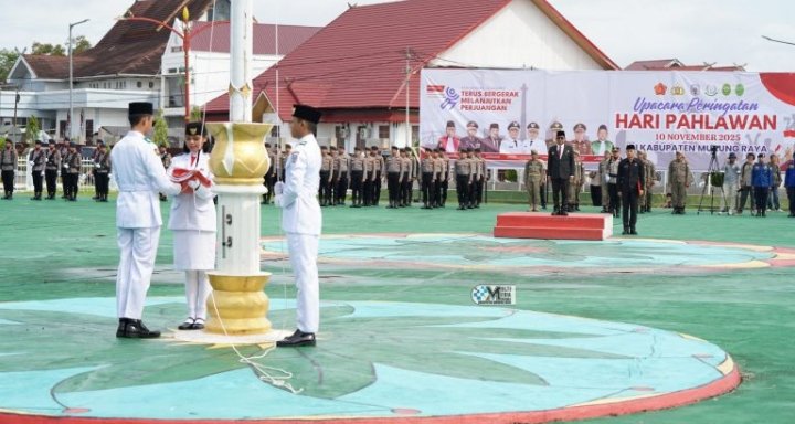 ASPIRASINEWS, Murung Raya – Pemerintah Kabupaten (Pemkab) Murung Raya (Mura) menggelar upacara peringatan Hari Pahlawan Nasional tahun 2025 di halaman Kantor Bupati Mura, Senin (10/11/2025). Bertindak sebagai Inspektur Upacara yakni Bupati Murung Raya, Heriyus.