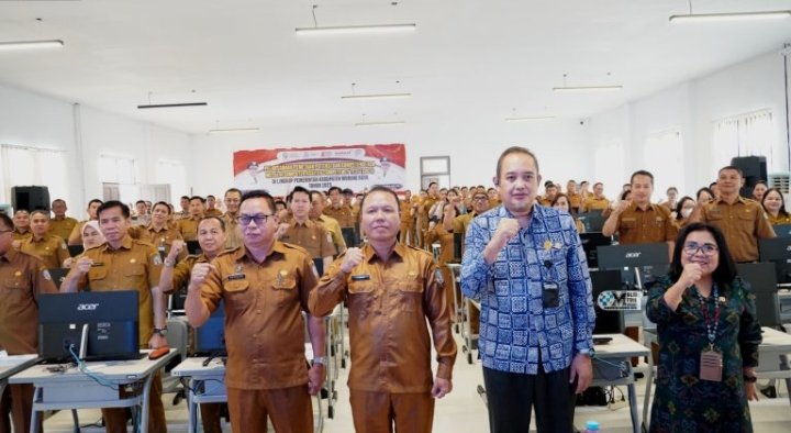 ASPIRASINEWS, Murung Raya – Bupati Murung Raya (Mura), Heriyus yang diwakili Asisten Administrasi Umum Setda Kab.Mura, Batara menghadiri pembukaan Pemetaan Potensi dan Kompetensi ASN melalui Computer Assisted Competency Test (CACT) di lingkungan Pemerintah Kabupaten (Pemkab) Mura, Selasa (8/7/2025).