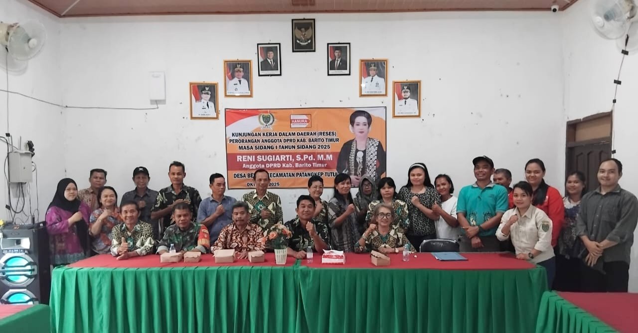 ASPIRASINEWS, Barito Timur — Anggota DPRD Kabupaten Barito Timur, Reni Sugiarti, S.Pd., M.M., melaksanakan kegiatan Reses di Desa Bentot, Kecamatan Patangkep Tutui, pada Sabtu (25/10/2025). Kehadiran legislator dari daerah pemilihan tersebut disambut hangat oleh pemerintah desa dan masyarakat setempat.