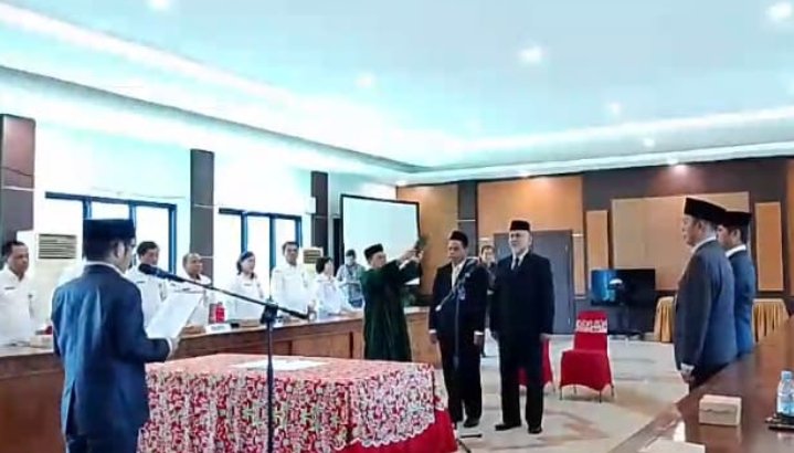 ” Selamat kepada pejabat yang sudah dilantik dan diambil sumpah janji, untuk diketahui pengambilan sumpah janji jabatan ini merupakan salah satu bagian dari perputaran roda organisasi yang tentunya bertujuan untuk pembinaan, pemantapan kapasitas kelembagaan serta pengembangan karir sebagai Aparatur Sipil Negara ” ujar Indra Gunawan.