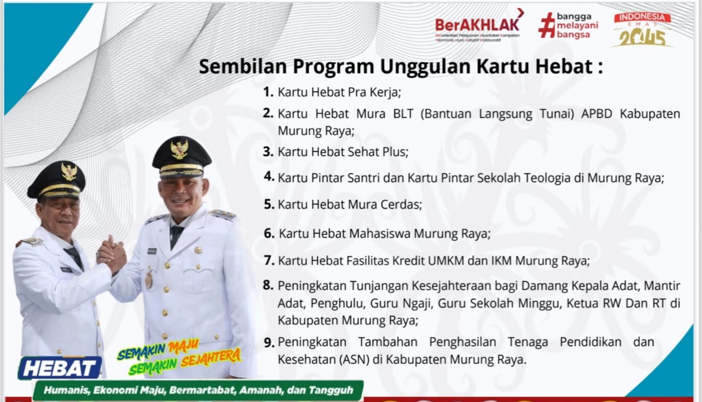 Berikut adalah Sembilan Program Unggulan Kartu Hebat Pemkab Murung Raya: