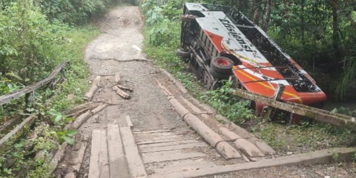 ASPIRASINEWS, BARITO TIMUR – Insiden yang mengakibatkan Bus terguling di Sungai Wakai jalan Hayaping-Janah Jari RT. 06 Desa Hayaping kecamatan Awang kabupaten Barito Timur. Kejadian diperkirakan pada pukul 22:00 WIB tanggal 14 Februari 2025.